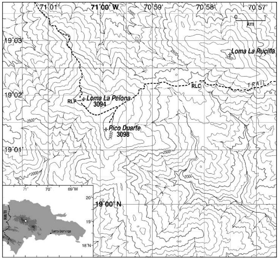 Der Artikel berichtet, dass im Jahr 1912 der Botaniker Pater Miguel Fuertes einen Berg namens Loma Rucilla als höchsten der Insel bezeichnete (2.855 m). Später bestieg der schwedische Botaniker Erik Ekman vermutlich denselben Berg, den er Loma La Pelona nannte und als „kahles Hochplateau mit zwei Gipfeln“ beschrieb (Bolay 1997).